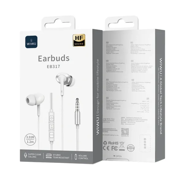 Enjoy crystal-clear audio with the WiWU EB317 Stereo Earphone, designed for music lovers who want powerful sound and everyday durability. Equipped with high-fidelity 14.2mm dynamic drivers, these earphones deliver rich bass, balanced mids, and crisp highs—perfect for music, movies, and gaming.